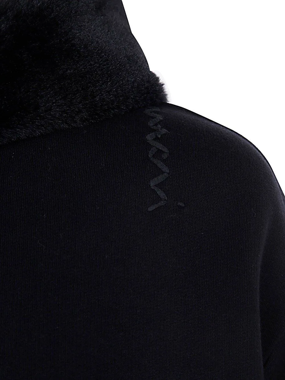 Long sleeve cotton hooded sweatshirt. Marni logo embroidery. Faux-fur lined hood.Â